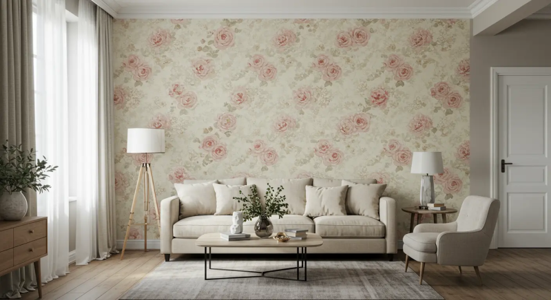 Цветочные обои с повторяющимся рисунком требуют тщательной стыковки узора, поэтому перед покупкой важно точно рассчитать количество рулонов. Это поможет избежать ситуации, когда не хватит материала, а рисунок на последних полотнах не совпадет.